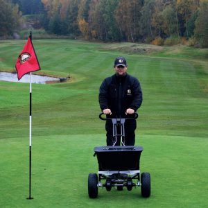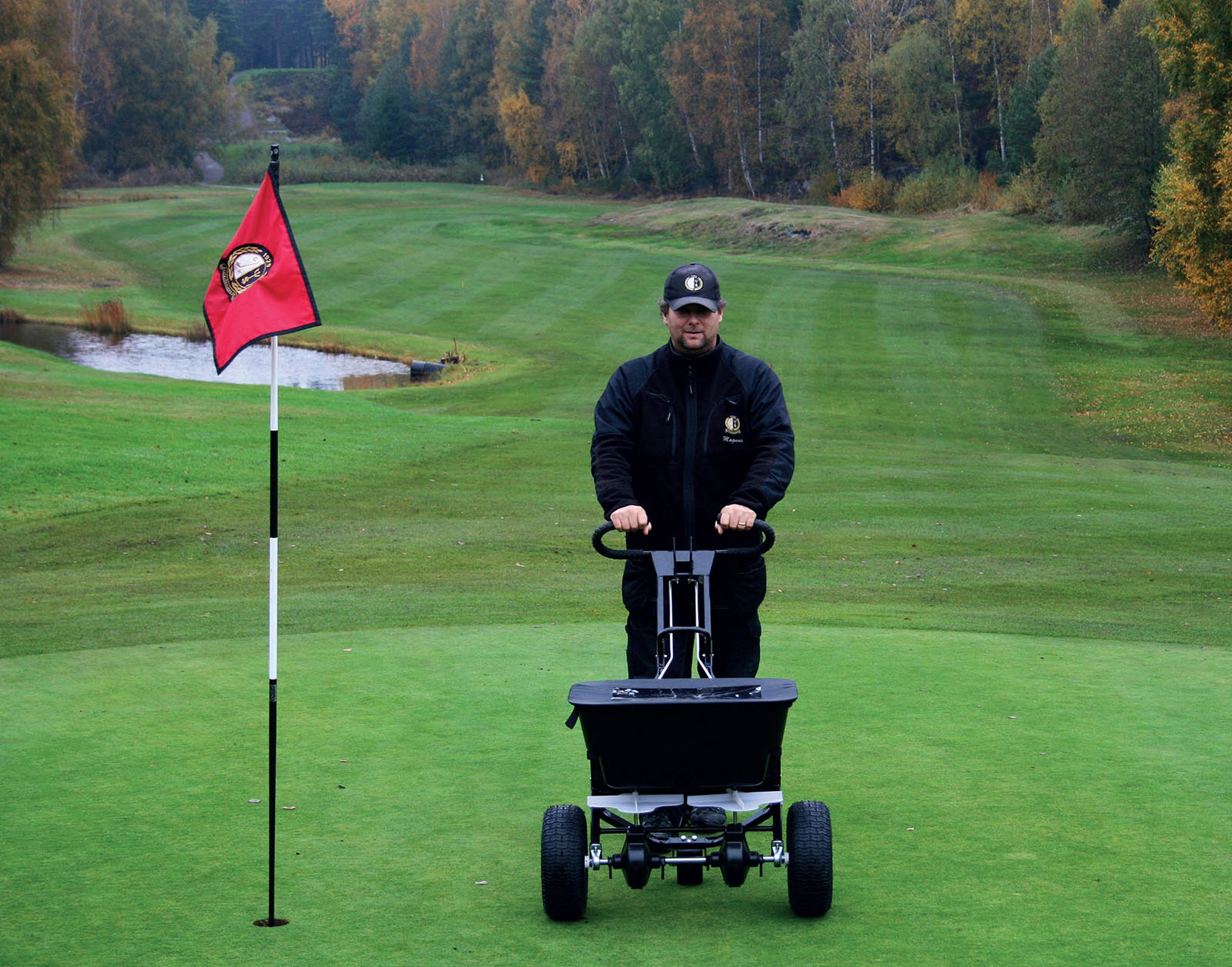 The Super Spreader is now upgraded with new ergonomic handle, extra handle for easy lifting, better scale for calibration. New for 2018 is that it´s suitable for fine sand top dressing as well as fertilizer (pick option in the box above).
