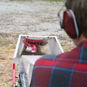 Forward and reverse motion is controlled with the tractor’s hydrostatic drive.