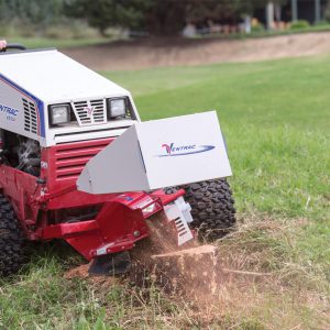 The Stump Grinder, mounted on the 4000 Series tractor, creates an agile, powerful and “turf friendly” mobile unit for lawns, golf courses, parks, and municipalities.