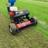 Overseeding grass is important to keep it strong and resistant against all kinds of outside threats. Regular overseeding keeps your grass green and healthy. MAREDO designed an efficient solution for overseeding or interseeding small, medium and large areas: The MAREDO ST418 VibeDisc-Seeder. The ST418 is a slit seeder which will plant the seed. A shaft with vibratory discs will produce a pattern of pre-cut slits. Right behind these discs, V-shaped round discs will open the pre-cut slit right at the position where the seeds drop. The seed will be ‘planted’ in the slit making it protected against the weather and birds and ready to germinate. The large diameter rear roller will help closing the slits and will also drive the seed dosing system. Changing gears help setting the right dosage needed.